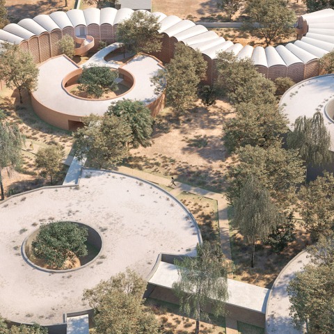 La nueva clínica de maternidad y pediatría en el Hospital Tambacounda es un edificio curvilíneo de dos pisos. Combina las dos clínicas, pediatría y maternidad, en el mismo edificio. Está ubicado al norte de la clínica pediátrica existente y gira en torno a él, luego cambia de dirección para crear un nuevo patio semicerrado orientado al norte. El diseño curvilíneo crea un edificio con calidad sensual al tiempo que garantiza que casi no se deben cortar árboles para su construcción.