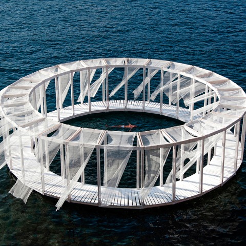 Antiroom II es un espacio en blanco que flota en el agua azul, como las nubes blancas flotan en el cielo azul.