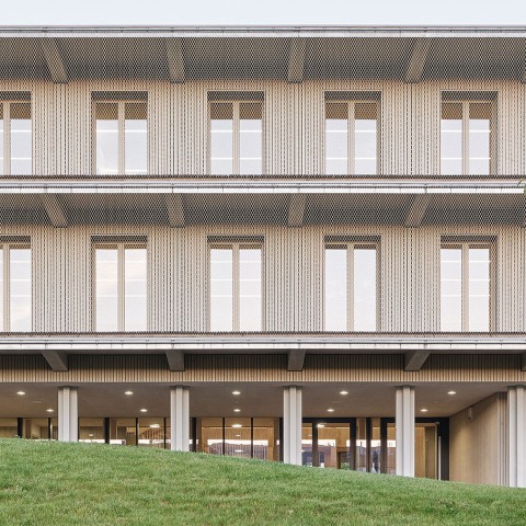Gracias a la prefabricación independiente de la intemperie de todos los componentes de madera, el edificio escolar pudo levantarse con bajas emisiones y a bajo coste, lo que también fue posible, sobre todo, gracias al trabajo preciso de todos los implicados en la construcción, ya que la planificación de la construcción de madera en prefabricación tuvo que coordinarse, en última instancia, de forma muy precisa con las tolerancias del hormigón in situ en la obra.
