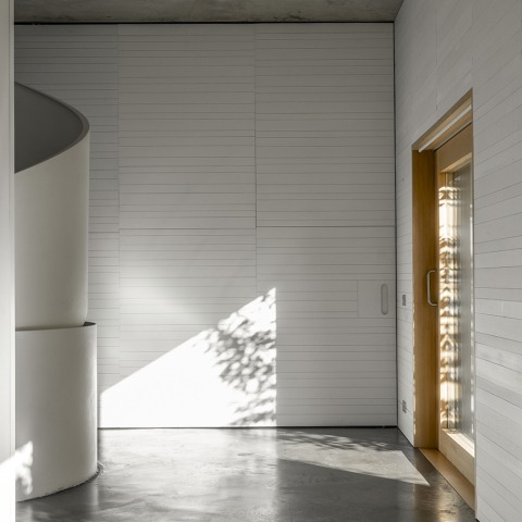 La imagen exterior de la vivienda muestra una belleza arcaica, minimal, se podría decir que desnudamente honesta. En el interior, una escalera metálica helicoidal se convierte en la protagonista espacial de la casa proyectada por Tuñón y Albornoz Arquitectos. El elemento de comunicación vertical vincula tres plantas —iguales, pero diferentes— destinadas a responder a las distintas funciones solicitadas por sus ocupantes, con una respuesta tipológica capaz de absorber de manera flexible las variables cambiantes de una familia en crecimiento.