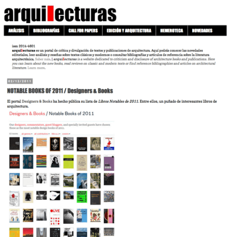 arquilecturas es un portal de crítica y divulgación de textos y publicaciones de arquitectura. Aquí podrás conocer las novedades editoriales, leer análisis y reseñas sobre textos clásicos y modernos o consultar bibliografías y artículos de referencia sobre la literatura arquitectónica.
