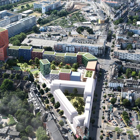 El proceso de construcción dentro de un barrio existente suele estar plagado de conflictos. En demasiados proyectos de desarrollo, la comunidad local tiene una elección difícil: aceptar las propuestas presentadas por los desarrolladores y el municipio, o luchar abiertamente contra el desarrollo. Pero en Düsseldorf, el promotor Cube Real Estate, MVRDV y LOLA Landscape Architects han demostrado hasta dónde puede llegar un desarrollo utilizando un enfoque basado en la comunicación abierta, la negociación y el compromiso. Con su diseño urbano para «Grüne Mitte», el equipo de proyecto propone casi 500 nuevos apartamentos (aproximadamente el 50 por ciento de los cuales serán viviendas sociales o asequibles) y espacios comunitarios para mejorar el vecindario y al mismo tiempo satisfacer las expectativas de la ciudad y sus clientes.