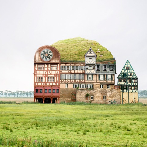 Comencé con la serie "Casas" en enero de 2015. Algunas de las imágenes de fondo fueron tomadas por el fotógrafo y periodista Oliver Abraham. Todas las demás imágenes han sido fotografiadas por mí. Muchas fueron tomadas durante los viajes por el noreste de Alemania. Mi último viaje me llevó a la región del Ruhr donde hay molinos abandonados y montones de carbón y acero. Me parece que eso es muy emocionante. Las casas en la imagen "Ostheim" se encuentran en lo alto estos viejos montones de carbón. Para la foto "Malakoff" utilicé una torre de extracción ("Torre Malakoff") y la catedral de la norteña ciudad alemana de Greifswald.