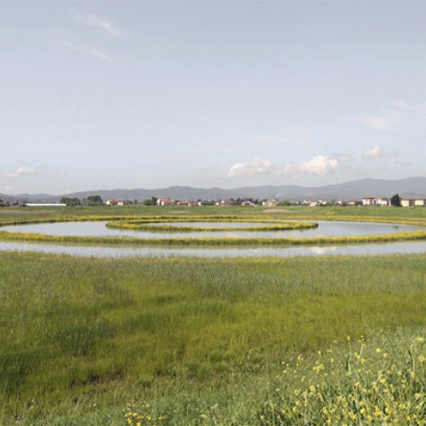 La construcción en 2003 del nuevo humedal 'Lake Acqualunga', lugar de trabajo, donde se encuentra esta obra, se produce debido a la excavación de un campo agrícola, la formación de los bancos y el fondo del lago, la construcción de islotes e islas, y lacreación de puestos de observación para el público. Un complemento de la intervención, el elemento de trabajo, se ha puesto al frente del punto de observación principal.