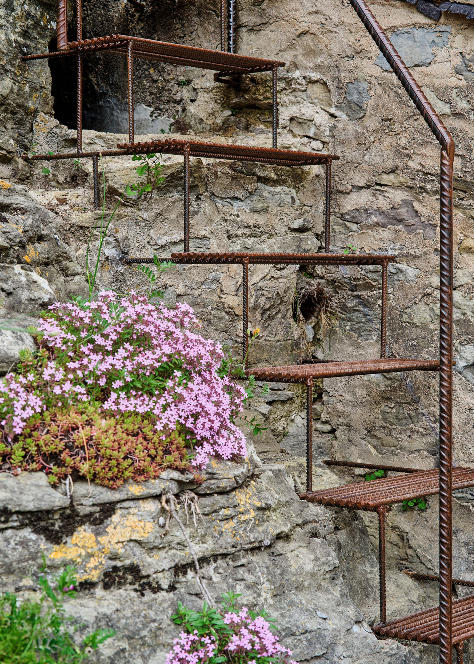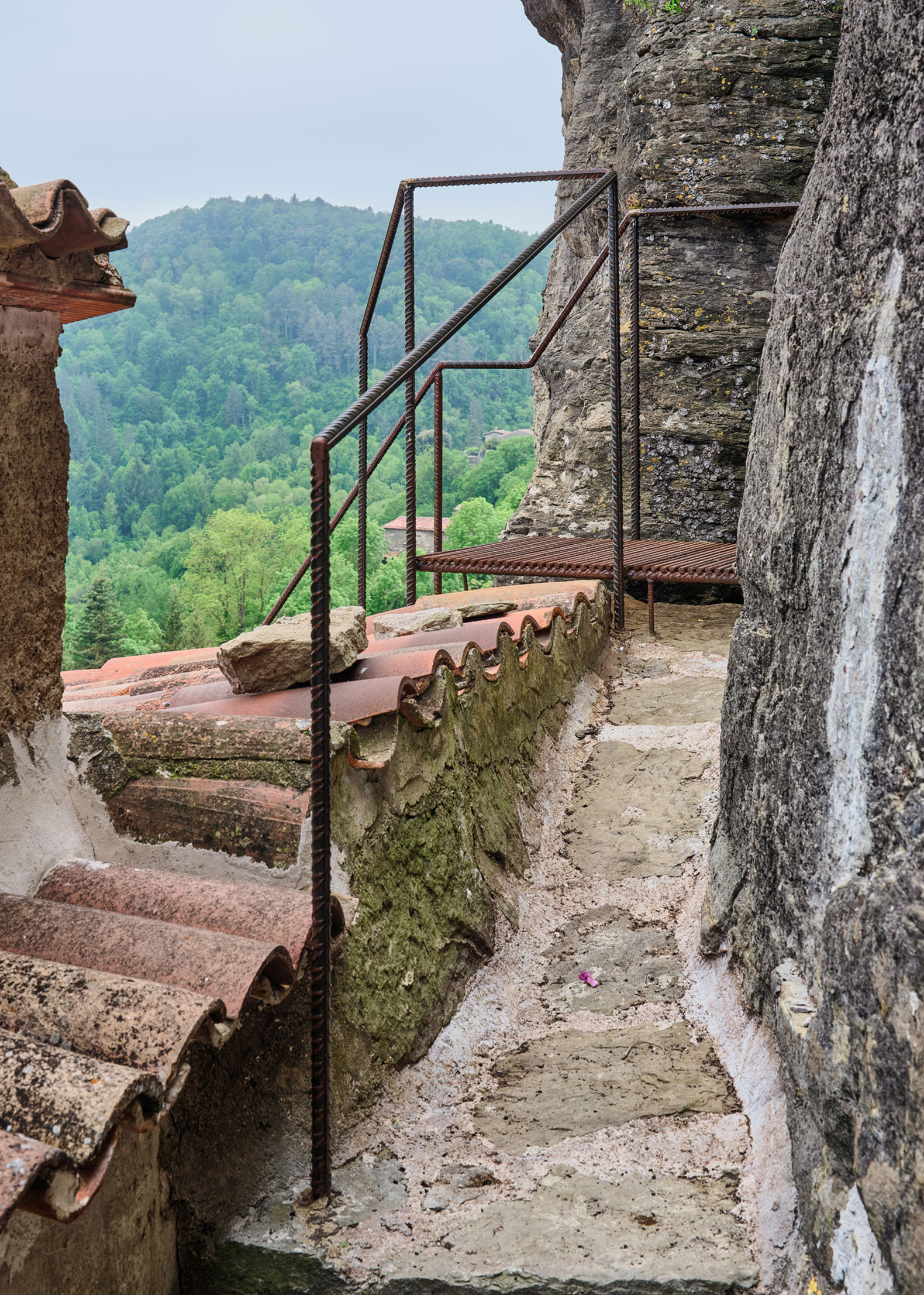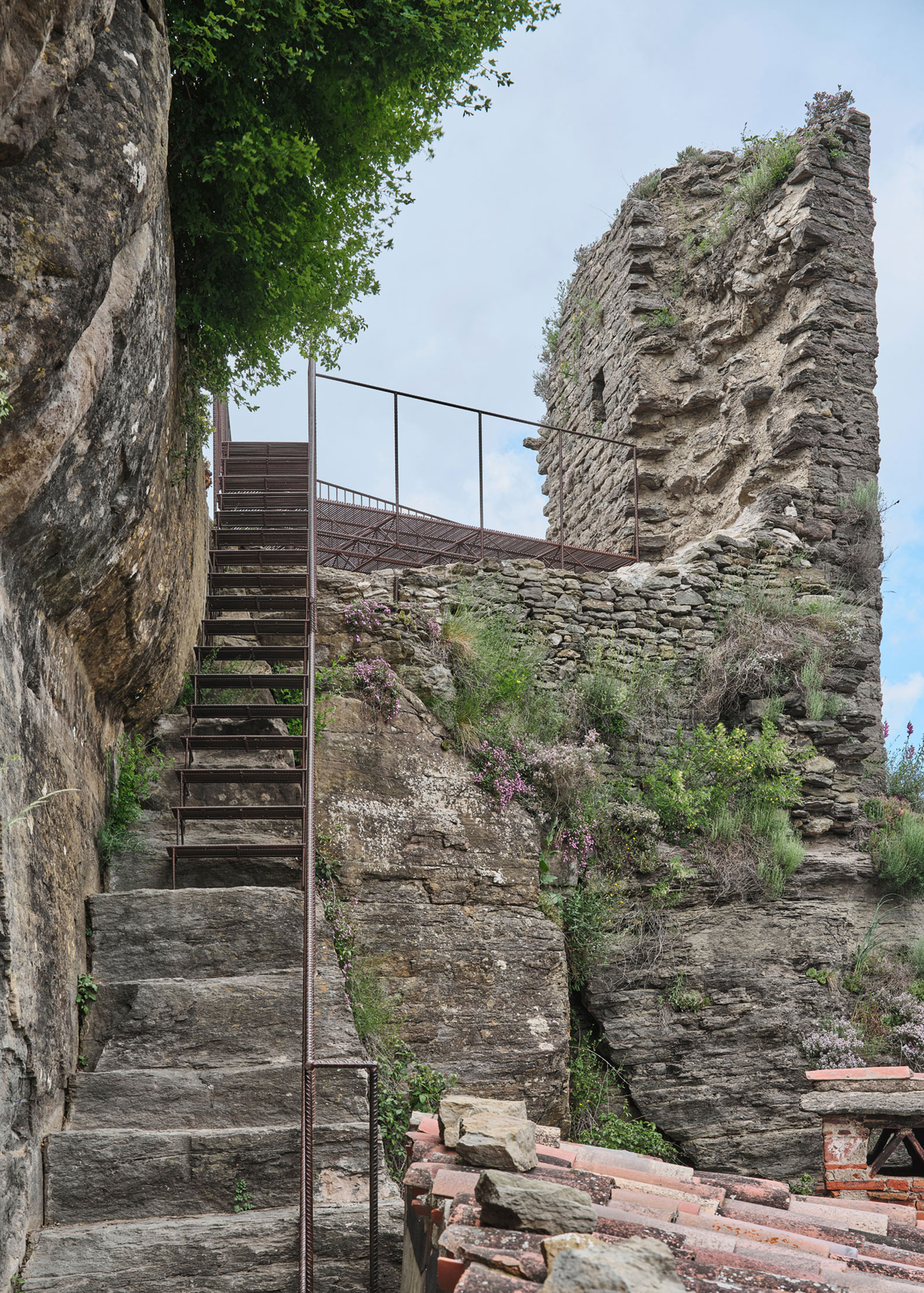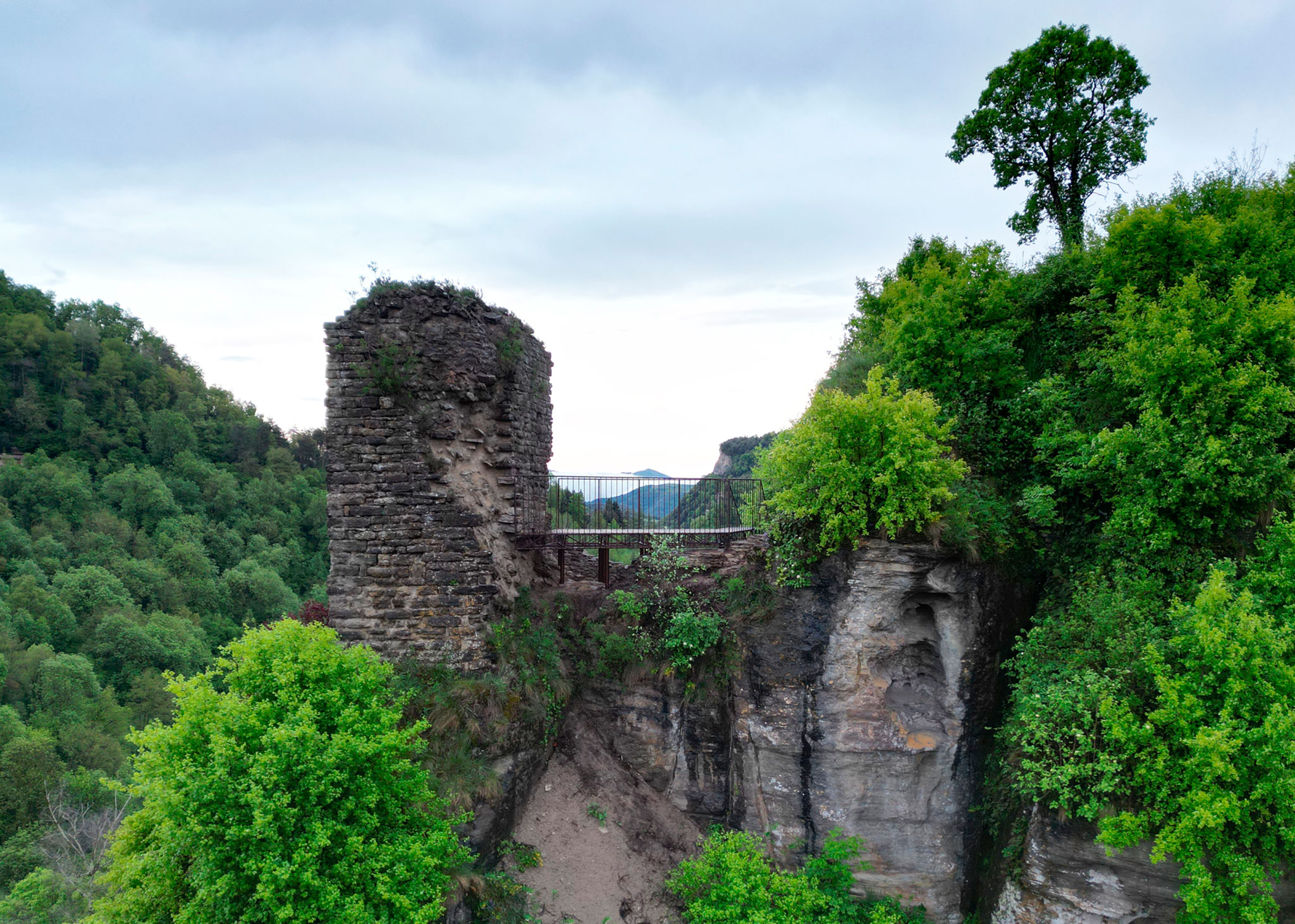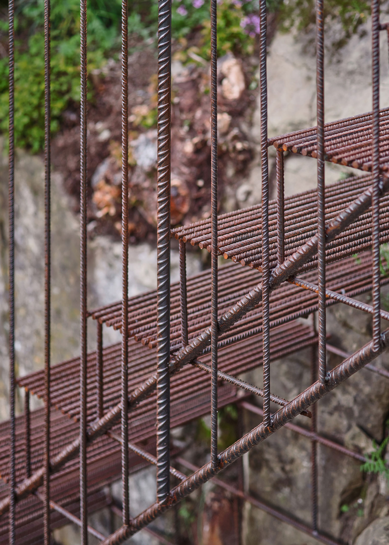 El proyecto tiene como objetivo mejorar el acceso al Castillo de Rupit desde el núcleo urbano y acondicionar un recorrido entre los restos existentes, garantizando la seguridad de los visitantes y poniendo en valor el conjunto arqueológico y paisajístico. Se propone una intervención respetuosa con el entorno, de carácter ligero y mínima afectación con las preexistencias que permita mejorar la comprensión histórica del lugar y reforzar su integración urbana. El itinerario se desarrolla en cuatro tramos que culminan en un mirador y se resuelve utilizando un único material, barras de acero corrugado de diámetro 12 y 25 mm que forman una estructura discontinua de pasarelas que se adapta al perfil de la roca.