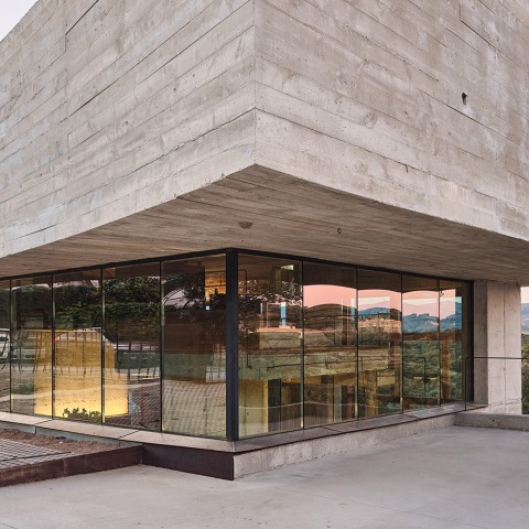 El uso del hormigón a través de una doble piel estructural, en la que se intercala el aislamiento, pretende desdibujar los límites entre interior y exterior, aportando una solución constructiva versátil donde un único material resuelve la estructura, cerramiento, interior e incluso las instalaciones, que discurren por su interior. También el carácter del hormigón, como materia, permite mostrar en la condición de habitar un carácter austero, desnudo, y sin adornos desde la atemporalidad.
