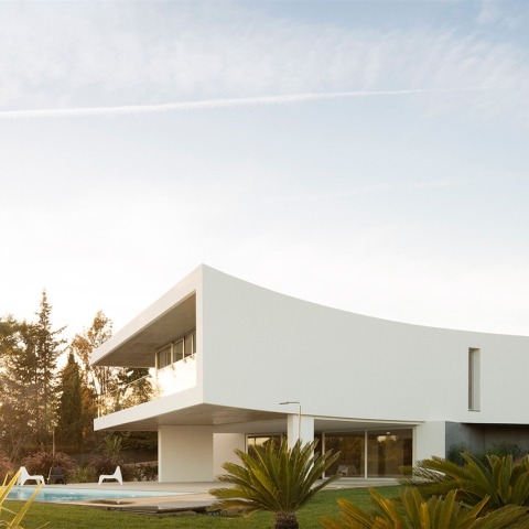 La villa consta de 2 plantas, la planta baja que se encuentra al nivel de la entrada, y que consta de 4 dormitorios, sala de estar y comedor, cocina y áreas de servicio, complementadas por un aparcamiento. La planta inferior se desarrolla como resultado de la pendiente natural del terreno e integra una sala de estar, directamente relacionada con la piscina. Esta planta baja se beneficia de un área cubierta donde se encuentra la piscina, creando relaciones muy interesantes entre el interior y el exterior.
