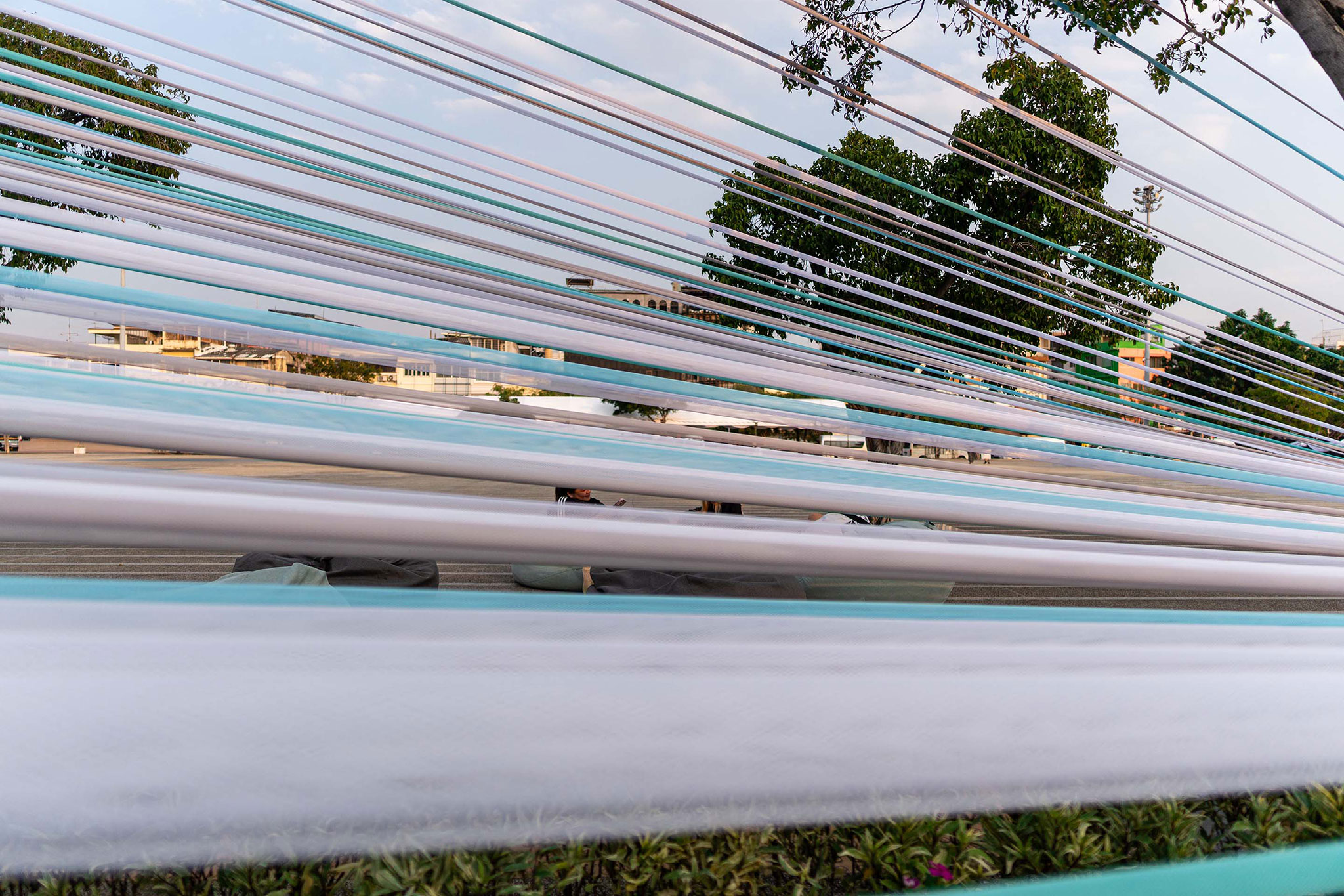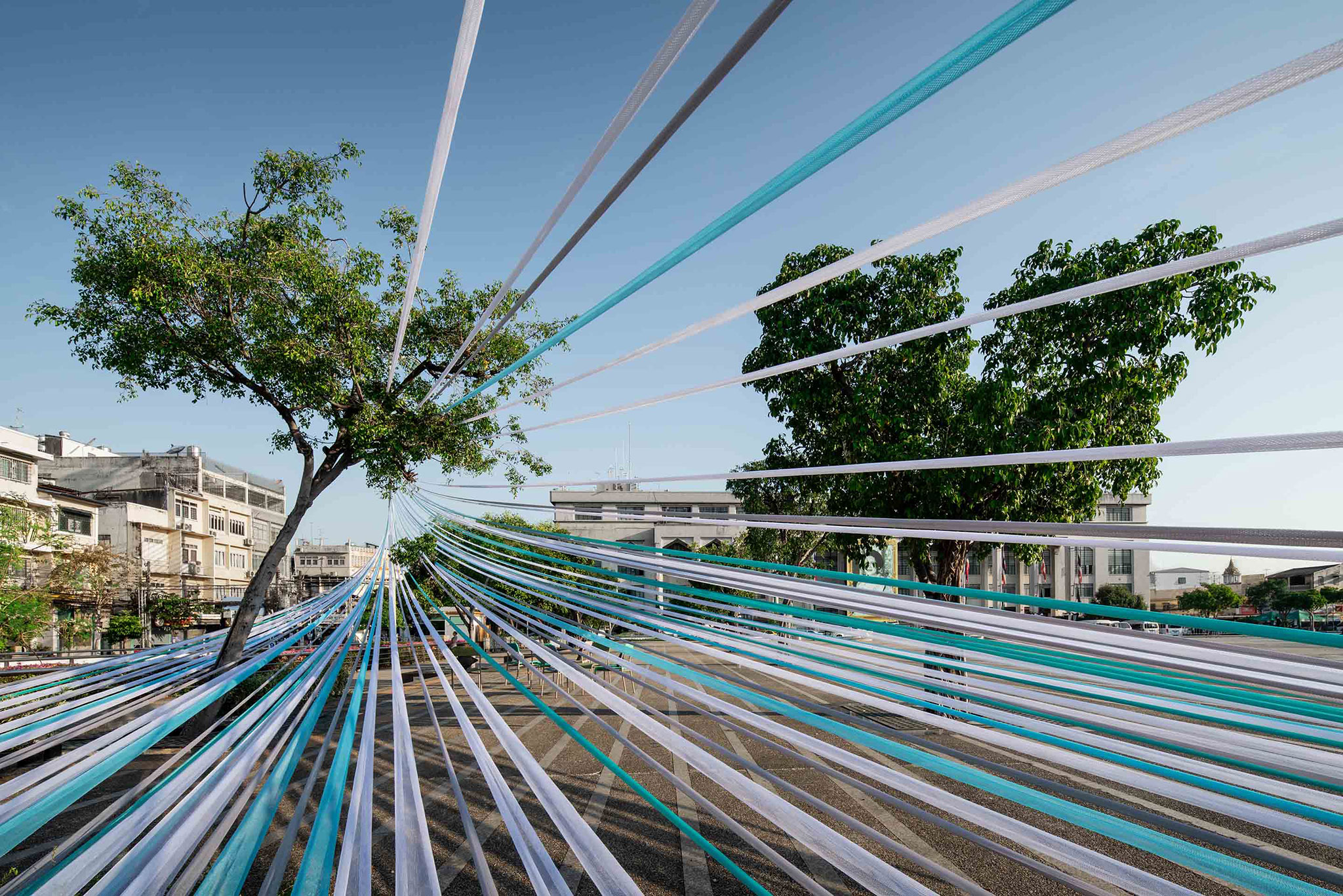 High Line Bangkok es un innovador pabellón temático sin residuos que reinventa y eleva la infraestructura urbana de Bangkok. Al transformar postes de alumbrado público comunes en un espacio público significativo, el proyecto redefine la infraestructura como un activo social y espacial para los ciudadanos. Si bien Tailandia cuenta con millones de farolas en sus calles, rara vez se integran significativamente en la vida pública. Los arquitectos Jenchieh Hung y Kulthida Songkittipakdee, fundadores de HAS Design and Research, proponen una transformación estética y socialmente participativa que reinterpreta la infraestructura pública para un estilo de vida tropical. El pabellón integra dispositivos de sombreado, ventilación natural y características espaciales de estilo arcada, a la vez que incorpora telas tailandesas reciclables localmente con las farolas existentes, resaltando tanto la sostenibilidad como el patrimonio cultural.