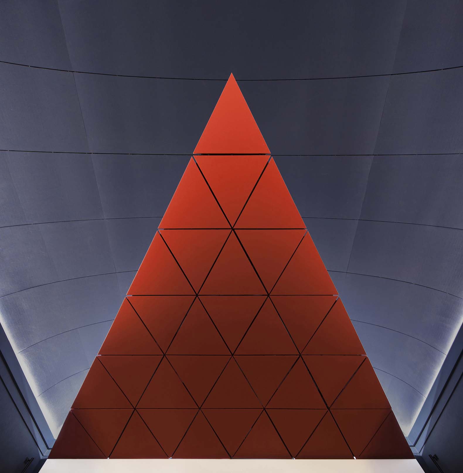 BACH / Jaume Bach + Anna & Eugeni Bach mantienen el diálogo entre el espacio abovedado original y la geometría abstracta planteada en 1987, proyectando una renovación que conserva los elementos icónicos de esa propuesta: la pequeña sala de proyección triangular que organiza y divide la circulación en la entrada, y el triángulo suspendido sobre el escenario, que funcionaba como dispositivo de reverberación y que ahora se convierte en una pantalla acústica que oculta los altavoces centrales.