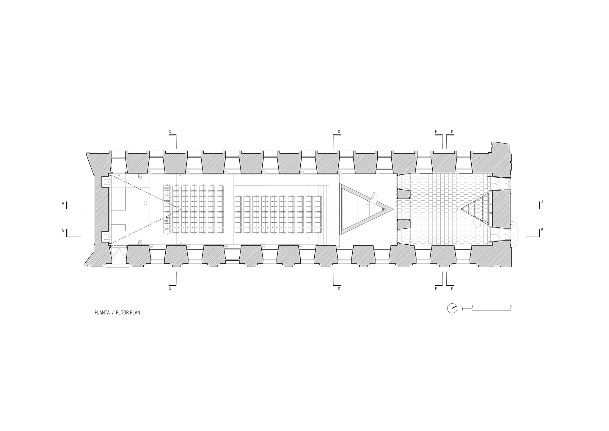 Con esta estrategia, se pretende adaptar las condiciones de la sala a su nuevo uso y, al mismo tiempo, mantener el carácter de “objetos geométricos” dispuestos bajo un gran espacio abovedado, tal como concebía el proyecto original: un cielo estrellado bajo el cual se organizaban los distintos eventos.