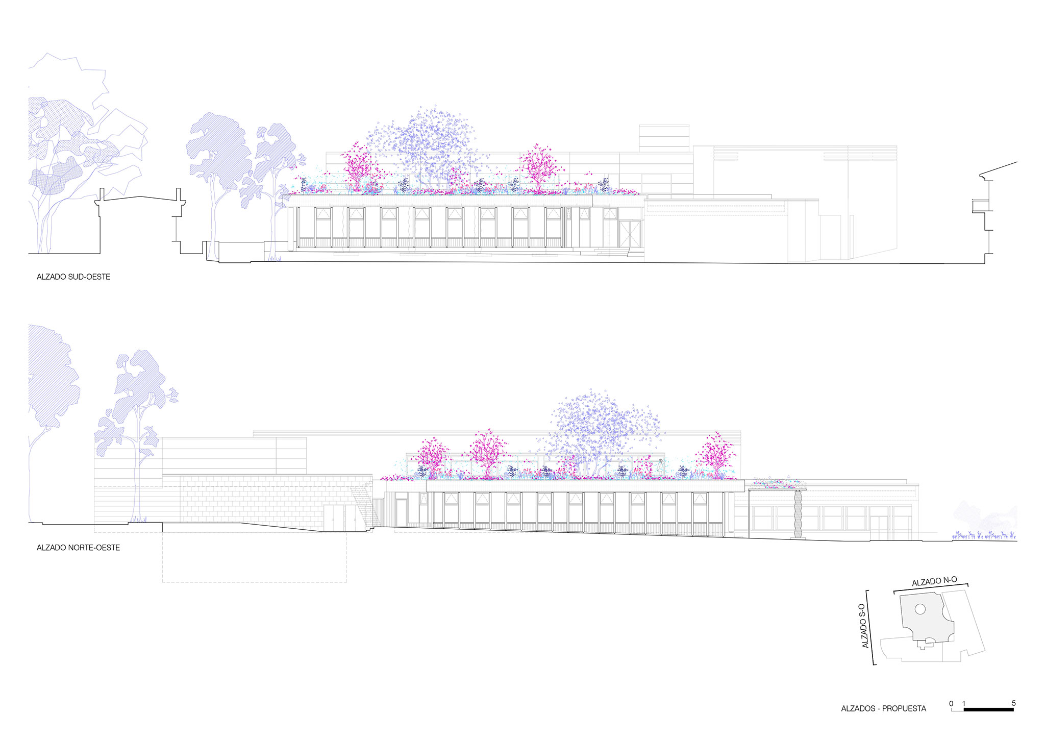 La arquitectura debe mejorar los sitios y recuperar la memoria histórica. Por tanto, añadimos una cubierta ecológica, donde la naturaleza y el agua serán de nuevo protagonistas e interactuarán con las actividades de la biblioteca y del Centro de Cultura. No queremos desvirtuar, sino potenciar ese ecosistema histórico.