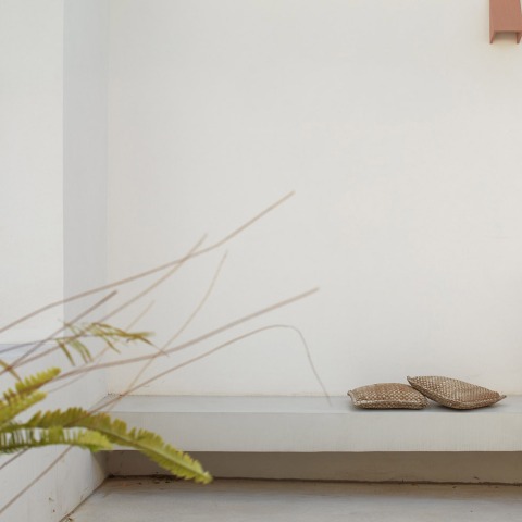La materialidad del proyecto busca la línea de una vivienda construida con materiales sinceros, naturales y que puedan envejecer bien sin necesidad de excesivo mantenimiento. Materiales como mortero de cal en fachada, piezas cerámicas con tonalidad natural y suelos de cemento fratasado, contribuyen a construir esta atmósfera deseada. La elección de estos materiales, implica a menudo, valorar la imperfección y la irregularidad, pero forman parte de la belleza de la naturalidad de la vivienda.