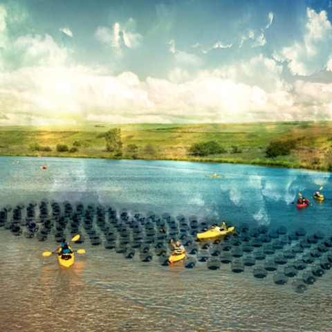 The “Beauty of Recycling” seeks to enforce the importance of recycling by creating solar energy collectors that not only harvest the sun’s energy, but creates a spectacular light show during the twilight hours. These solar energy collectors, composed largely of recycled materials, collect energy throughout the day, reserving small amounts of energy for a daily “Twilight Show”. The rest of the energy is distributed to local power grids. Spheres made of recycled plastic float on the surface of the water, tethered to the riverbed by anchored pulleys controlling their various heights and levels of submersion. These solar-energy-collecting spheres will go through a daily cycle of collecting energy from dawn to dusk. When the sun begins to set, the devices are submerged underwater and multi-colored LED lights within the devices’ plastic spheres begin to glow, creating a spectacular lightshow for park visitors that compliments the natural beauty of the setting sun.