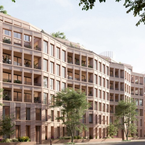 El edificio, que busca integrarse en su materialidad y color con el barrio, estará formado por dos alas conectadas por un volumen central de servicios «Glass House». La fachada del edificio tiene un ángulo que maximiza la luz natural desde la dirección este-oeste y un 75% de las viviendas tendrán acceso a terrazas privadas.
