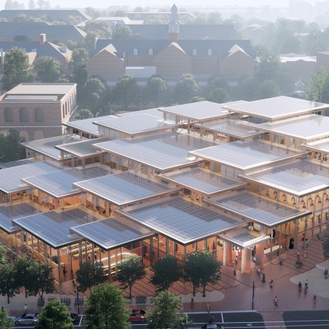 El nuevo Centro de Estudiantes de Hopkins comenzará a construirse en la primavera de 2022 y se completará en el otoño de 2024. Este es el tercer edificio académico de BIG en los Estados Unidos, después del Centro de Innovación Comercial de la Escuela de Administración Isenberg para la Universidad de Massachusetts Amherst y el edificio The Heights para las Escuelas Públicas de Arlington, ambos terminados en 2019.