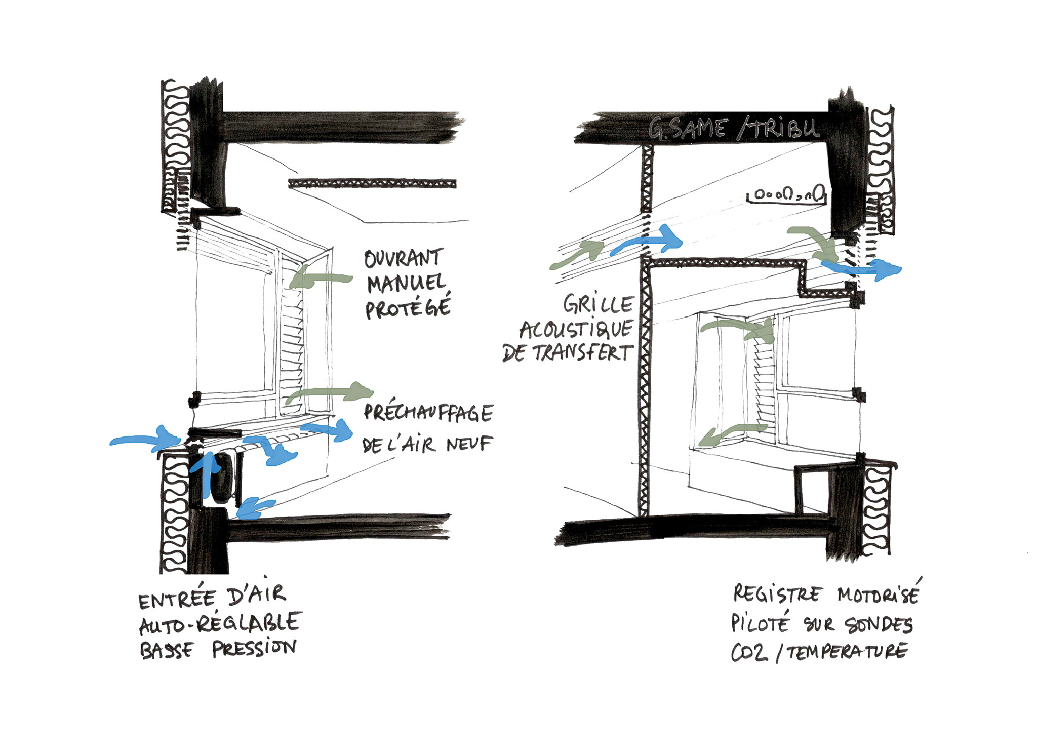 El proyecto es un diseño bioclimático, que aprovecha los recursos útiles para su correcto funcionamiento en su entorno. La estructura existente, ahora refinada, disfruta de una mayor penetración de luz natural. La estructura expuesta ofrece superficies suaves y ricas texturas, y proporciona una inercia favorable a la mejora de la regulación de la temperatura interior. El conjunto del proyecto también proporciona una ventilación natural e higiénica mejorada, concretamente mediante la creación de tolvas interiores de doble altura y de un pozo de aire con el jardín del patio.