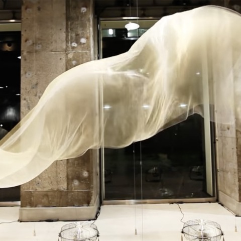 Esta es una instalación (en línea con otras instalaciones que recuerdan la de "Maison Hérmes" por Tokujin Yoshioka) para el escaparate de la tienda en Osaka ELTTOB TEP ISSEY MIYAKE. Utilizando una tela muy ligera y fina "de organdí", sacan el máximo provecho de sus características. Los 8 ventiladores son controlados por ordenador y la tela se agita en el aire como una criatura con naturaleza propia.