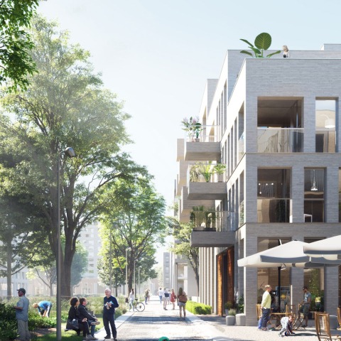 Blue District se convertirá en un animado vecindario urbano con abundante vegetación. Todos los servicios urbanos serán de fácil acceso; caminar y andar en bicicleta serán los principales modos de transporte. Se hizo hincapié en la sostenibilidad, las soluciones energéticas innovadoras y la movilidad sostenible (compartida). El vecindario ofrece una variedad de tipologías de viviendas para diversos grupos objetivo, con aproximadamente una cuarta parte de las unidades destinadas a viviendas sociales de alquiler.
