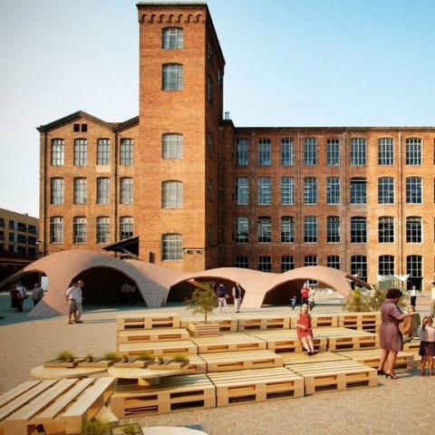 El pabellón abovedado plantea un dialog en continuidad con las naves industriales de la fábrica, y a su vez, introduce un sistema constructivo tradicional y ampliamente utilizado en Cataluña desde hace siglos. Este sistema es barato, sostenible y ofrece la posibilidad de ser autoconstruido, pero necesita de una mayor especialización del personal de obra, que debe estar compuesto por excelentes albañiles que puedan realizan un trabajo artesanal. El reto que supone el trazado y la construcción de una bóveda tabicada, permite disfrutar del trabajo, por su dinamismo y el nivel de pericia necesaria, que no demandan otro tipo de construcciones más estandarizadas.