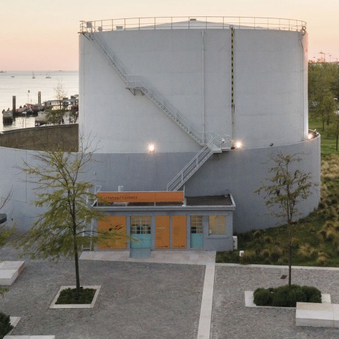 Sin embargo, la sala se ve interrumpida por un objeto impúdico. Un mostrador a rayas de mármol blanco y negro está colocado con precisión y contundencia. La larga y elegante caja está ligeramente inclinada y ocupa todo el espacio. El mostrador bien vestido alberga una pequeña cocina, una barra, multitud de armarios y una máquina expendedora de billetes. La misma caja atigrada aparece en el punto de información, concluyendo una intervención esporádica, aunque consistente.