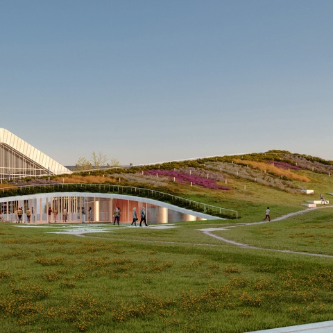 Esta cubierta ajardinada mezcla las áreas verdes con áreas para actividades y contemplación, convirtiéndose en un balcón al paisaje donde se pueden contemplar momentos sociales o culturales, aprovechando las vistas panorámicas hacia las viñas que se extienden hasta el horizonte. Esta idea busca crear un espacio con significado para la comunidad local, promoviendo el sentimiento de identidad y pertenencia a través de una intervención respetuosa con el paisaje que lo envuelve. El estudio ha optado por concebir una referencia visual, al mismo tiempo de una referencia en la región, un punto de encuentro.