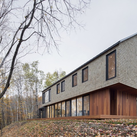 Bourgeois/Lechasseur Architectes firman una vivienda que surge como la confluencia entre el estilo tradicional de las viviendas de la costa atlántica canadiense con la arquitectura contemporánea. Se toman revestimientos y elementos de la arquitectura vernácula como los revestimientos de cedro y la cubierta a dos aguas de zinc, que contrastan con elementos añadidos de la vivienda como su forma y conformación de espacios.