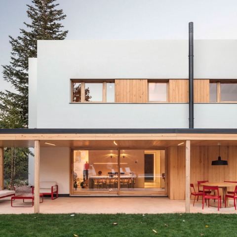 A diferencia de los porches de madera, esbeltos y ligeros, los diferentes volúmenes del edificio son compactos con un acabado exterior de SATE. Este acabado nos permite: