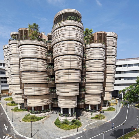 Premiado por el Gobierno de Singapour por su componente sostenible, el hub universitario diseñado por Heatherwick Studio, en colaboración con el estudio de arquitectos locales CPG Consultants, alberga salas para tutorías personalizadas y aularios en varias torres que quedan conectadas por un espacio central.