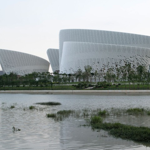 La cerámica se utiliza como material principal del proyecto debido a su importancia en el contexto histórico de la conexión comercial marítima de la Ruta de la Seda entre China y el resto del mundo. PES-Architects trabajó con el artista cerámico taiwanés Samuel Hsuan-yu Shih para diseñar el interior cerámico artístico para dos auditorios principales de acuerdo con las exigencias acústicas, utilizando el legendario material "China White" y la nueva tecnología. Todas las fachadas están revestidas con azulejos de cerámica blanca y celosías, mientras que la sala de ópera y la sala de conciertos exhiben este material cultural de forma innovadora y creativa en la superficie de la pared acústica.