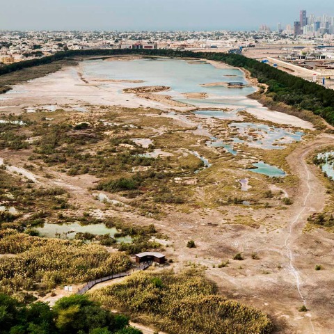 Después de años de esfuerzos para volver a recuperar las aves no migratorias nuevamente a la zona, Este espacio es ahora el hogar de 350 especies de aves, una zona de descanso para 33.000 aves migratorias, y un pulmón de aire para la ciudad de Sharjah.