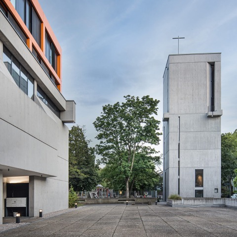 Este antiguo alumno de Egon Eiermann construyó la iglesia entre 1962 y 1965 al más puro estilo brutalista, un estilo a menudo incomprendido, pero que se hizo frecuente en todo el mundo desde principios de la década de 1960, especialmente en edificios públicos. Sus representantes eran arquitectos que estaban influenciados por la guerra, a menudo, por las dos guerras mundiales. Con sus edificios de hormigón en bruto sin revestimiento, intentaron introducir diseños modernos, audaces y depurados en unas ciudades devastadas por la guerra. Así pues, estos arquitectos se alzaron contra la reconstrucción urbana, tal como se la imaginaba la pequeña burguesía que idealizaba la historia mediante el estilo kitsch. Los nuevos edificios debían mostrar un carácter extremadamente pragmático, social y democrático. En el fondo, la arquitectura brutalista era un proyecto político. Su nombre, por cierto, no tiene nada que ver con la «brutalidad», sino que procede del término francés ‘béton brut’ (hormigón bruto), un material de construcción en bruto, sin recubrimiento.