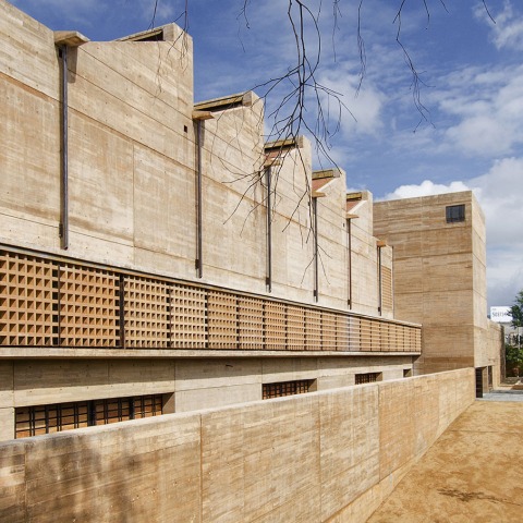 El edificio está construido en muros de concreto aparente de color ocre, aludiendo al color de las tierras de la Mixteca. Oaxaca nos enseña la importancia de la arquitectura muraría y del claroscuro en la secuencia de patios, es una arquitectura sabia con la climatología que se funde con la vegetación permitiendo transparencias.
