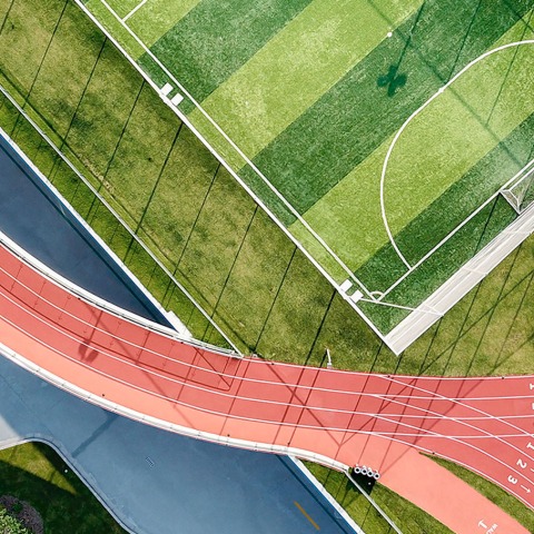 El estudio de arquitectos de Pekín, Approach Design (ZUP), agregó una nuevo edificio al Centro de Exposiciones de Cloud Town en Hangzhou, China, y lo cubrió bajo un techo verde con instalaciones deportivas, incluso una gran pista de atletismo y canchas deportivas.