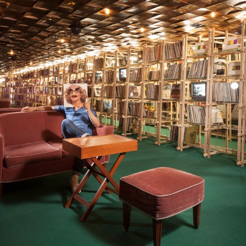 El espacio que rodea a la librería es un salón tranquilo y ligeramente decadente.