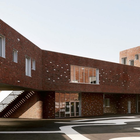 El colegio Levi-Strauss se ubica en el corazón de un distrito de crecimiento urbano, entre antiguas viviendas, almacenes y el barrio portuario de Lille, al norte de Francia. El colegio integra una fuerte concepción ambiental, asociada al sentido poético del ladrillo artesanal.