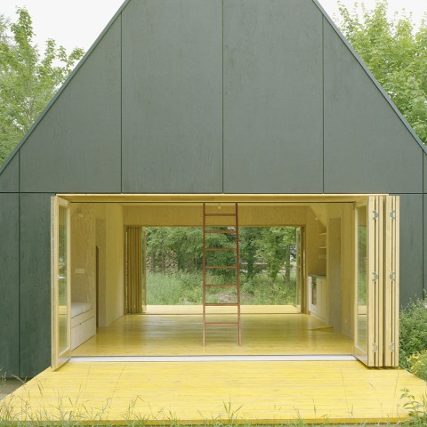 Para la construcción, los arquitectos eligieron la madera de pino como elemento dominante. Se emplean paneles de madera contrachapada de pino tanto para la fachada exterior como para las paredes interiores, extendiéndose hasta los muebles y gabinetes del interior. El suelo es de lamas de madera de pino.