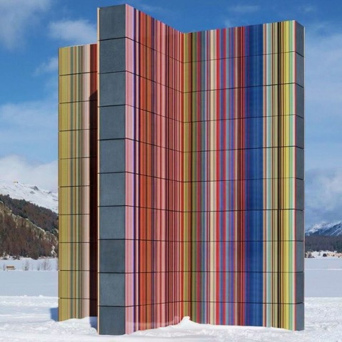 En su configuración escultórica, ocho paneles verticales entrelazados, revestidos con baldosas cerámicas de intensas franjas cromáticas, se elevan por encima de los cinco metros, generando una composición densa y estratificada. La intersección de los elementos conforma un espacio interior en cruz al que el público puede acceder, quedando inmerso en variaciones cambiantes de color y luz. La abstracción adquiere así dimensión espacial y experiencial, activando la percepción, la materialidad y el entorno alpino circundante, un territorio al que Richter regresa con frecuencia desde 1989, atraído por la nitidez cristalina de su luz, la fuerza de su topografía y su atmósfera contemplativa. STRIP TOWER (962) se despliega como una experiencia pública sostenida en el tiempo, invitando a una atención prolongada y a una conciencia intensificada del lugar.