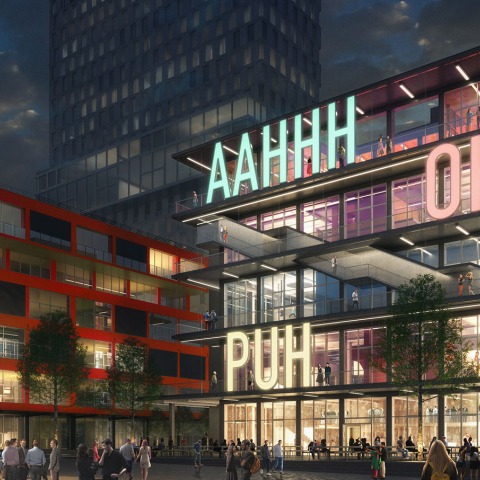 El edificio que acaba de iniciar su proceso de construcción responde a la intención de MVRDV de implementar un punto focal en la zona, con un nuevo edificio que se abre en todas las direcciones y se encuentra en el corazón de la plaza Knödelplatz. La fachada del edificio es transparente y no separa el interior del exterior y, en lugar de aislar sus actividades internas, está en constante diálogo con su entorno. Una reencarnación transparente de tiempos industriales celebrando el futuro.
