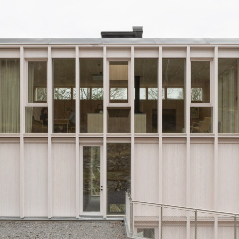 El edificio utiliza materiales renovables siempre que es posible, dadas las características particulares del terreno. Si bien el proyecto Saltviga trabajó con el ennoblecimiento de los recortes de la producción de suelos, en este proyecto se probó la idea de valorizar la madera en bruto. La madera de pino nudoso se transformó en madera de pino sin nudos mediante un proceso de corte y encolado selectivos. La madera nudosa se utilizó para las piezas estructurales interiores invisibles, mientras que las piezas impecables, cuidadosamente seleccionadas, quedaron expuestas. De este modo, la madera de pino pasó de ser un material asequible y de fácil acceso a uno con texturas más sutiles y elegantes.
