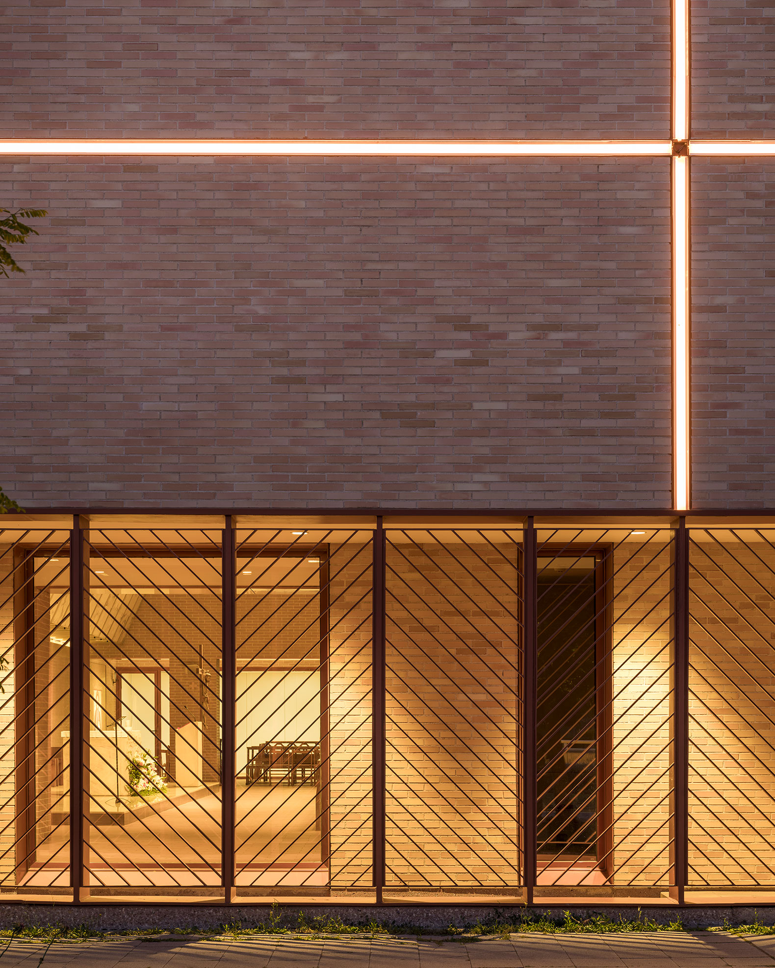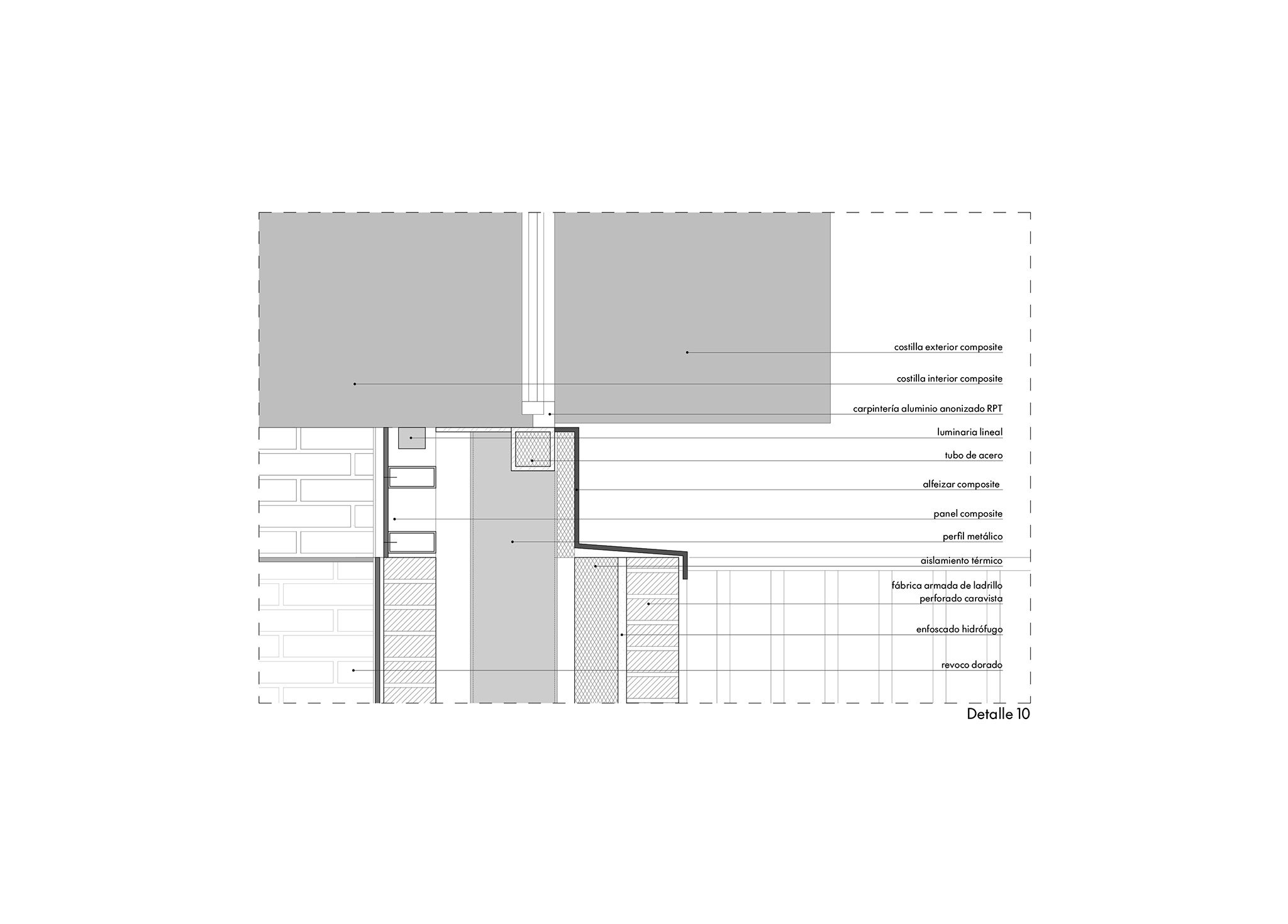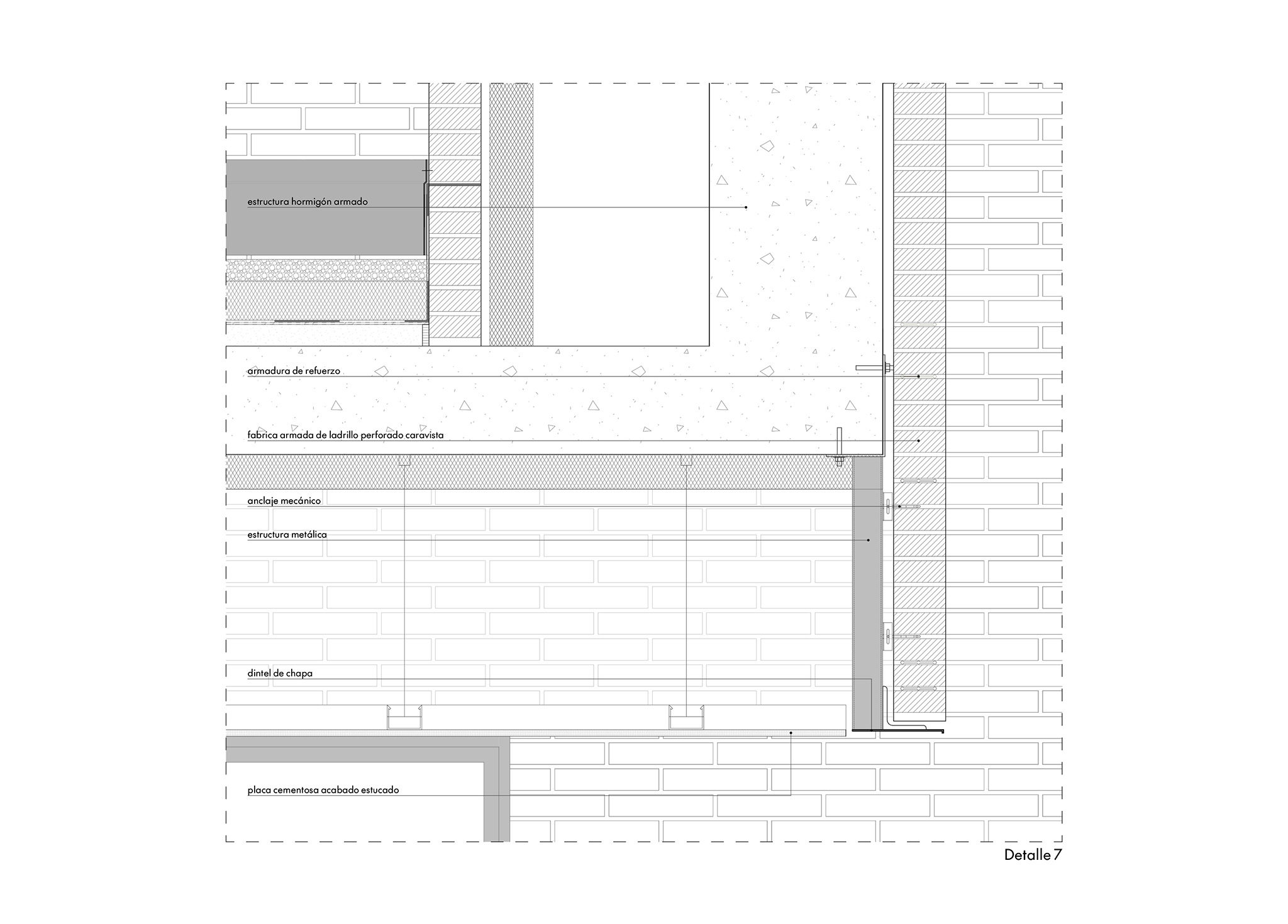 La cuidadosa elección de los materiales intenta potenciar la idea de unidad y continuidad del conjunto. En ese sentido, el ladrillo visto resulta protagonista y se extiende en todas las fachadas, tanto en el interior como en el exterior del proyecto.