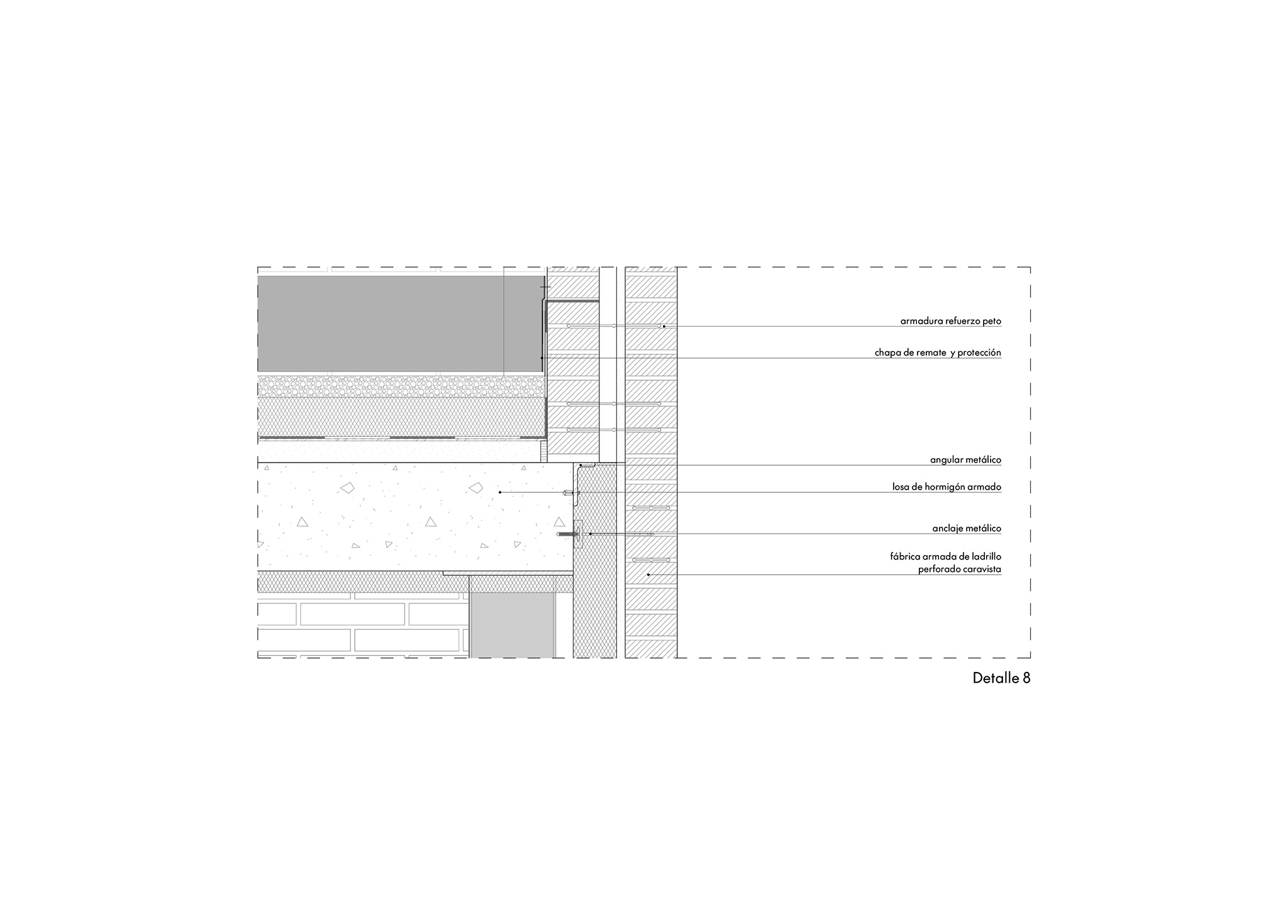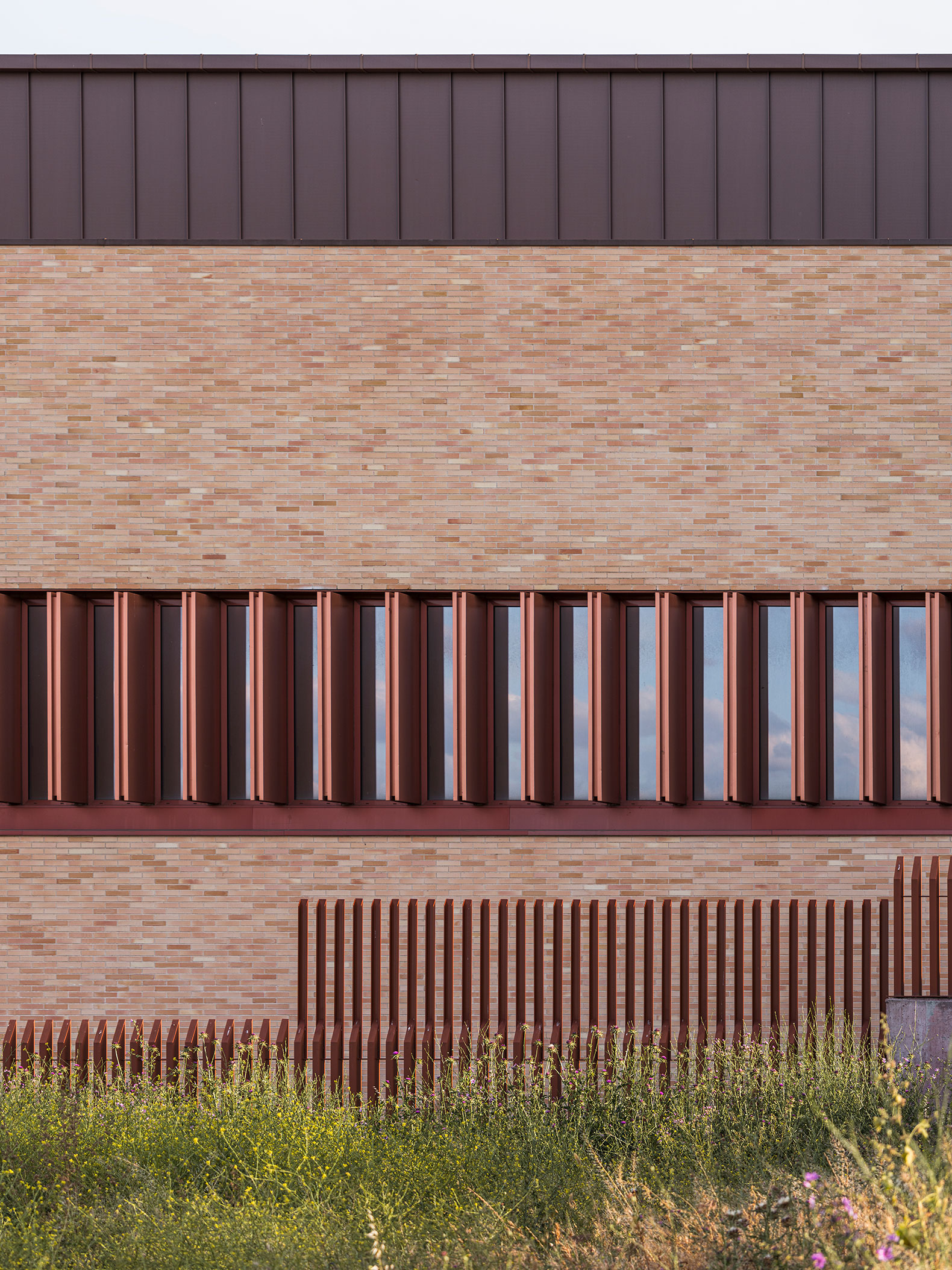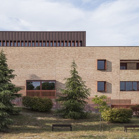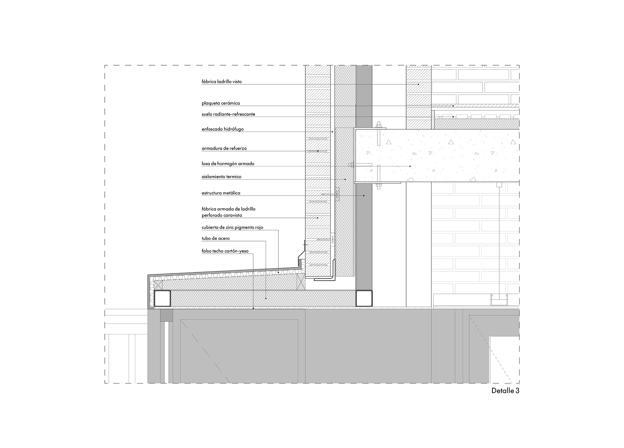 Una fábrica de ladrillo visto se extiende por todas las fachadas para potenciar la unidad del conjunto. Con similar planteamiento una única baldosa cerámica se coloca en la mayoría de los espacios del edificio.