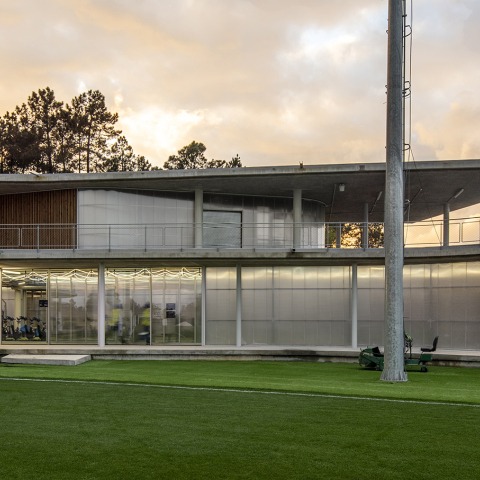Los arquitectos dividieron el complejo en espacios para actividades de interior, donde hay oficinas, gimnasios y vestuarios; y espacios para actividades de exterior, con tres campos de fútbol. El edificio de uso permanente cuenta con una planta baja y una planta superior, donde la permeabilidad no impide unas buenas condiciones de climatización.