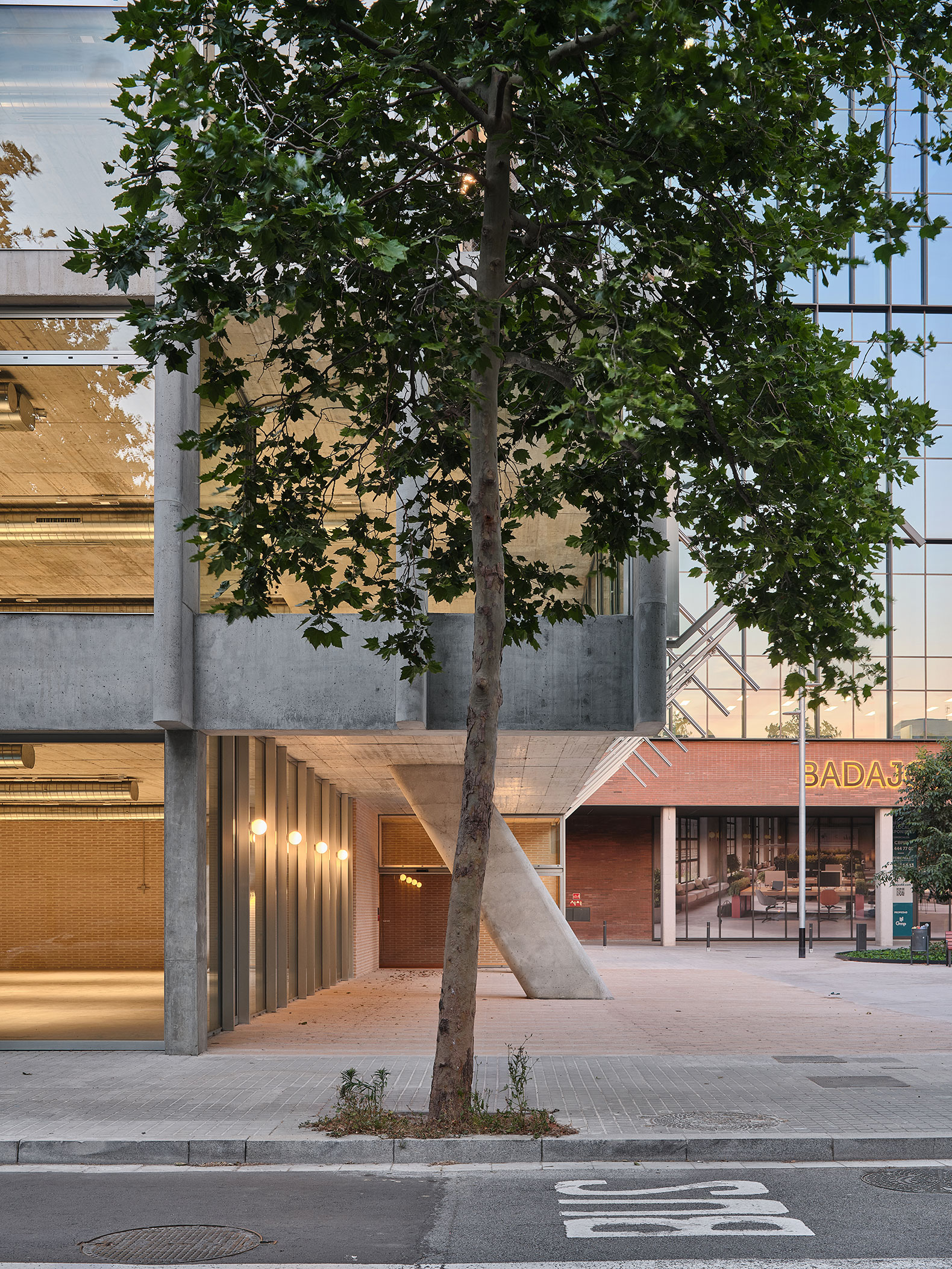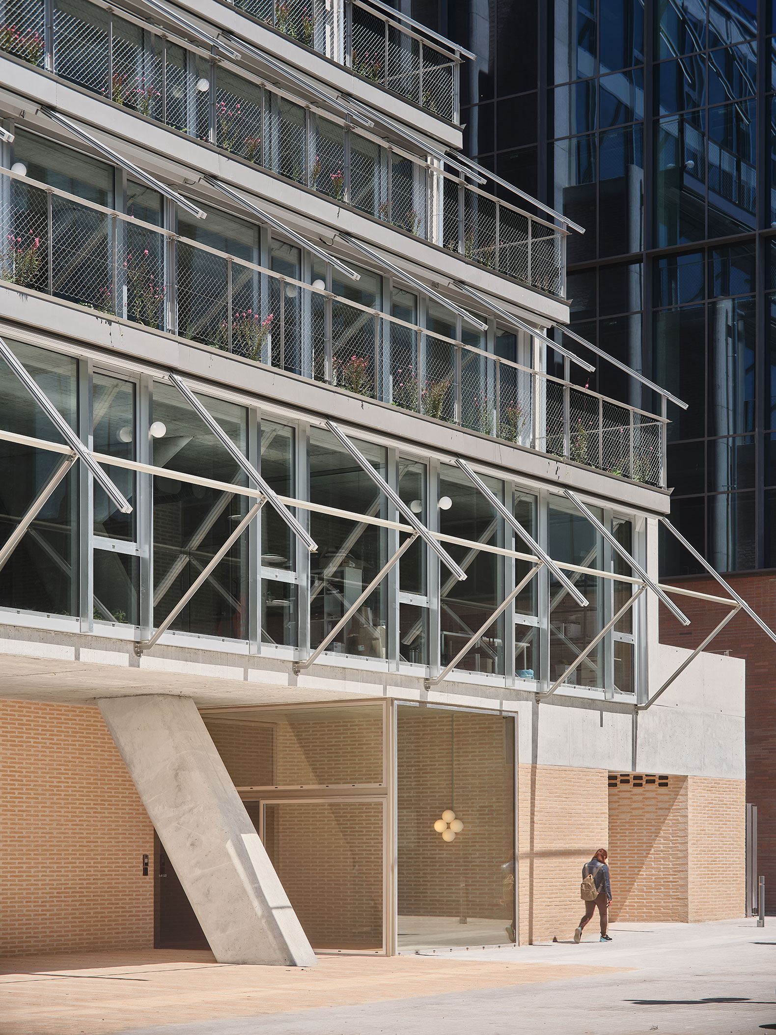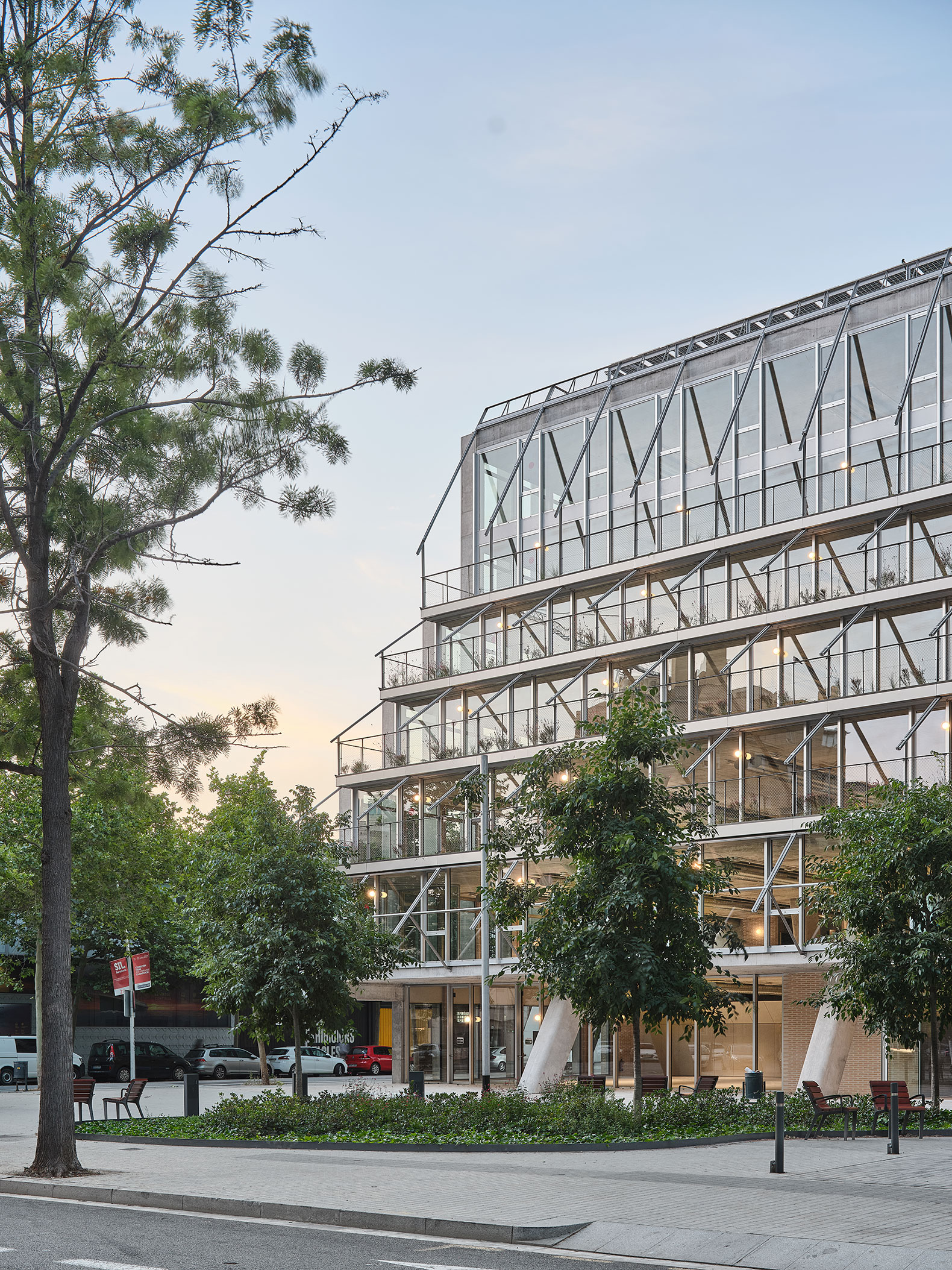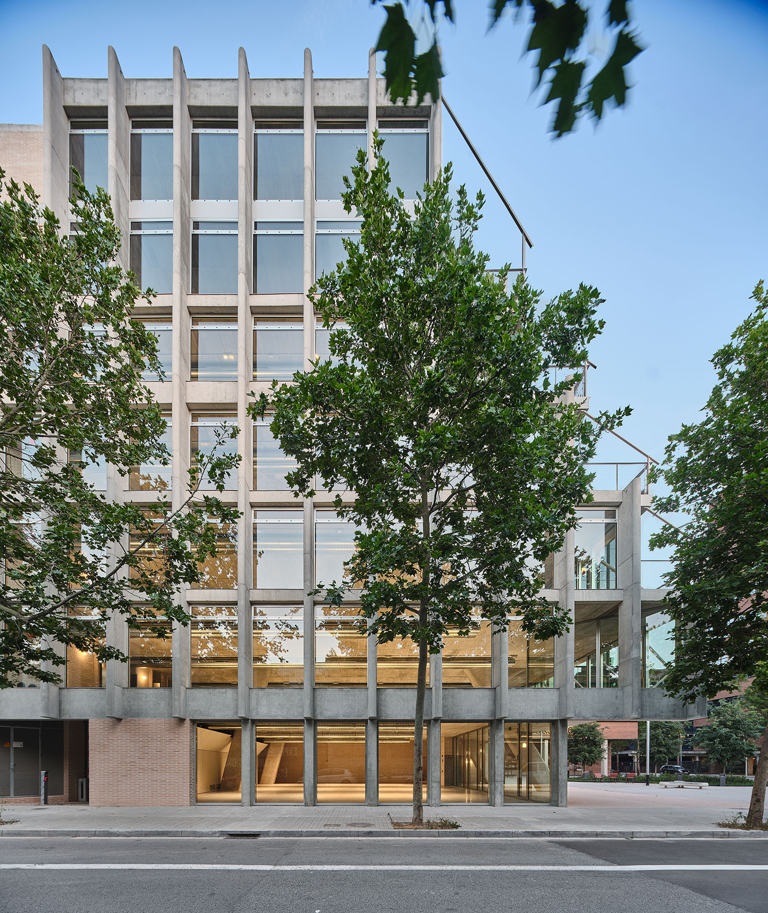 El edificio proyectado por BAAS arquitectura apuesta por un uso honesto de los materiales, cuya materialidad nunca se oculta. En los lugares donde son necesarios cerramientos, se plantea una utilización interesante del ladrillo cerámico, en referencia a la arquitectura tradicional del barrio de Poblenou.