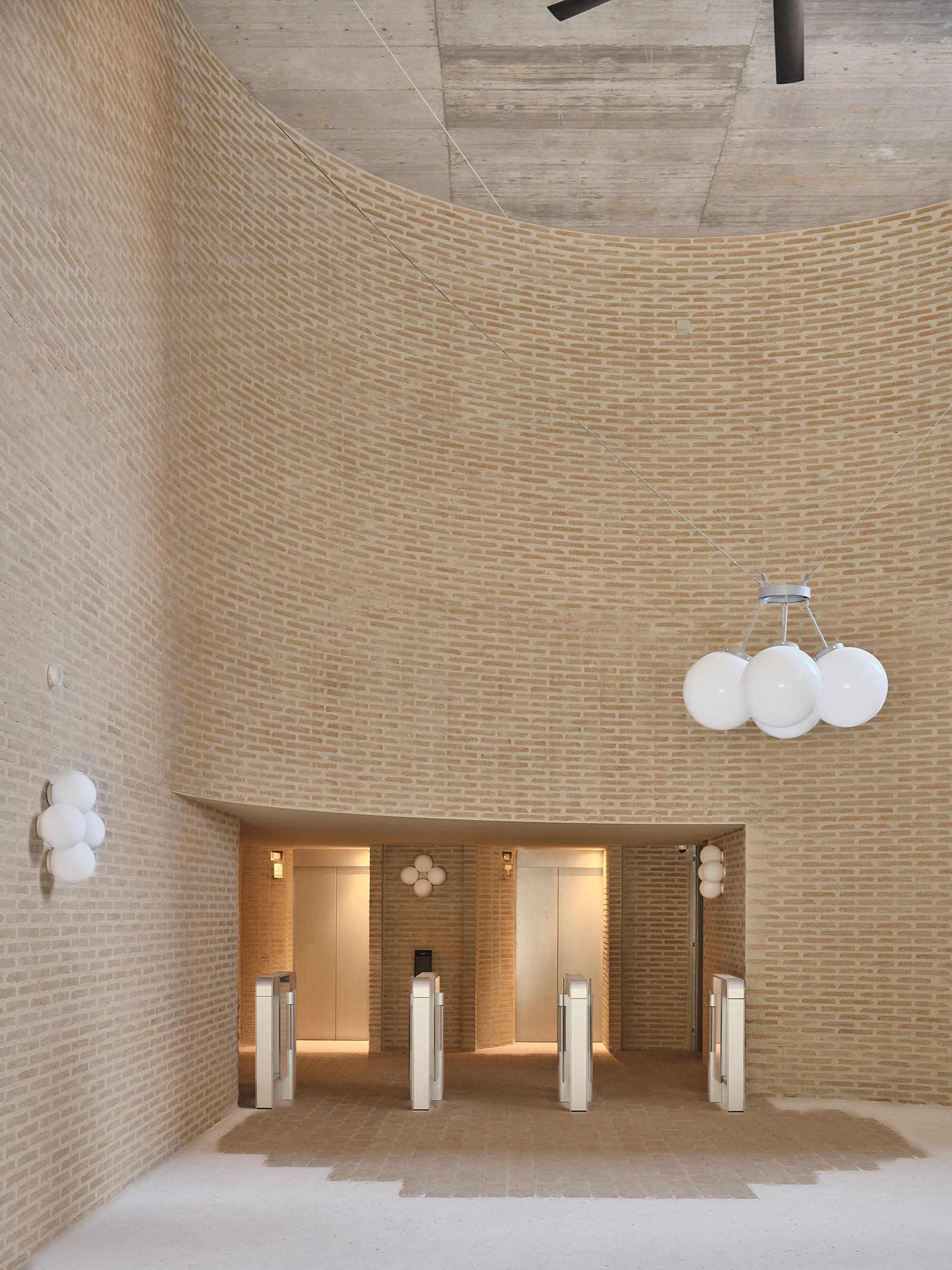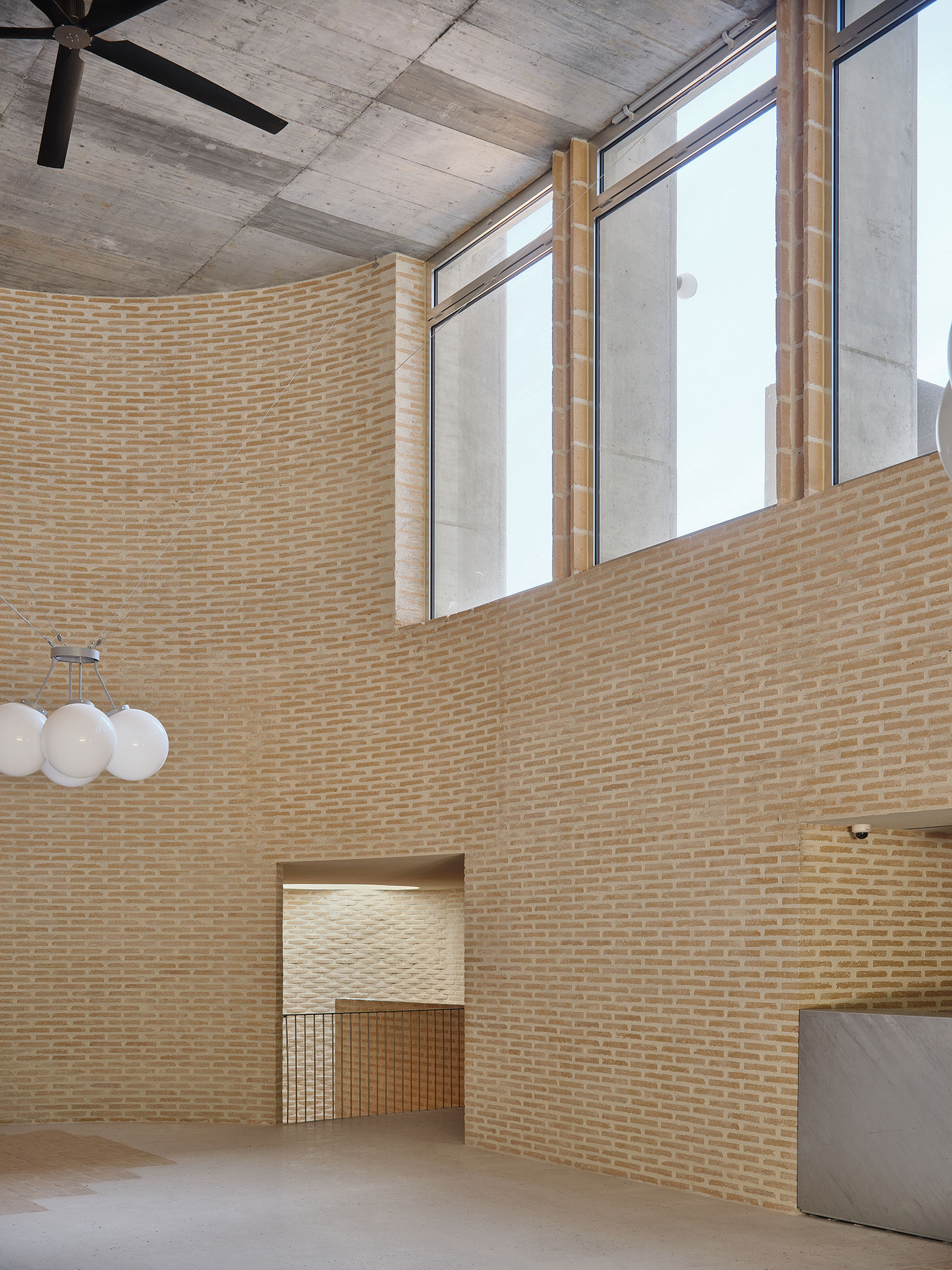 El proyecto apuesta por una gran honestidad material, donde desaparecen todos los revestimientos y el edificio se muestra tal y como se ha construido. Cuando la estructura de hormigón requiere algún cerramiento, éste se resuelve con ladrillo cerámico, como referencia a la arquitectura histórica y tradicional del barrio en el que se ubica.