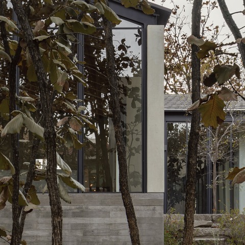 La fachada exterior se mantiene sencilla a la calle y pretende ser silenciosa en el entorno, al interior la configuración de la casa consiste y se genera alrededor del patio y de los niveles existentes para su desplante; esto permite relacionar los espacios interiores con los espacios exteriores naturales del terreno. La volumétrica general pretende distribuirse entorno al patio mediante 4 volúmenes conectados entre si. Los espacios exteriores de día se encuentran cercanos a la calle ; el vestíbulo, la cocina y el comedor, dichos espacios reciben al patio y se conectan entre si , posterior al comedor se encuentran unas escaleras en doble altura para conectar con el estudio en un nivel inferior, rodeado por un ventanal que da a un patio lateral contenido por vegetación y encinos.