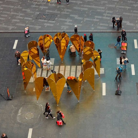 A unos días del celebrado 14 de febrero - San Valentín - las calles de Nueva York acogen esta instalación resultado del concurso Times Square Valentine Heart Design. Entre las numerosas propuestas es constante la aparición de corazones, en todas sus representaciones, materiales e interpretaciones posibles.