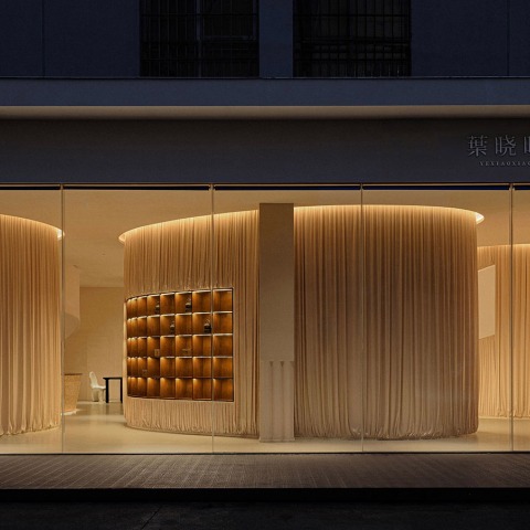 En todo el espacio del té, el estudio eligió la «cortina de tela» como protagonista de todo el proyecto, utilizando cortinas suaves para envolver el sólido edificio, haciendo que todo el espacio sea más suave y estirado. «La tela», como medio de comunicación del espacio, toca el territorio privado interior con sus características y formas suaves. Cuando las personas enfrentan emociones dispersas, necesitan un rincón tranquilo para proyectar su alma y su yo, permitiendo a los visitantes dejar de lado el ruido del mundo exterior. También es la intención original del estudio experimentar el amor y el ocio en un espacio suave y tranquilo.