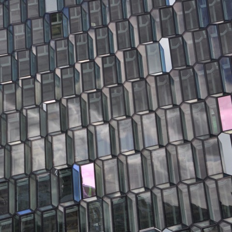 Construcción de la fachada para  el Harpa Reykjavik Sala de Conciertos y Centro de Conferencias. Inauguración del edificio hasta el 20 Agosto 2011