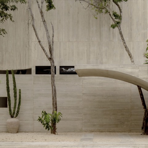 Los materiales elegidos se pensaron para mimetizarse con el contexto inmediato, entender que es una zona húmeda, de lluvia y con posibles Huracanes. Creamos una fortaleza que se va descubriendo poco a poco y se desenvuelve para mostrarse por completo como una escultura tallada. El concreto y la madera crean el equilibrio para generar calidez interior al usuario y marcan los recorridos. Además, el interiorismo por parte de Kayla Pongrac, convierte el proyecto en un hogar.