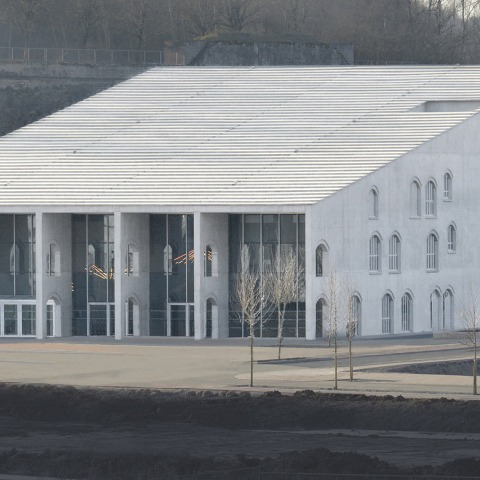 Su arquitectura narrativa ha inventado una forma particularmente singular, incluso endémica. Su morfología maciza y mineral responde con la misma potencia al desmesurado muro que la bordea. Su escritura también se refiere a otra gigantesca estructura de contención construida no muy lejos y que está alveolada según el principio de las arcadas. Un tema atemporal que recuerda a una estructura de soporte similar construida en Italia hace unos 2000 años, el Coliseo de Roma. También es en Italia donde los arquitectos se inspiraron en una referencia casi universal. Es un pequeño edificio que fue construido en el siglo pasado en las salvajes y fantasmagóricas calas de la isla de Capri. Se llama Casa Malaparte y esta casa es un icono de la arquitectura racionalista italiana ya que se ha convertido en un icono arquitectónico del cine desde que Brigitte Bardot y Michel Piccoli la pasearan en 1963 en Le Mépris de Jean-Luc Godard. La invención de este vínculo con Villerupt parecía casi incongruente, pero los arquitectos se atrevieron y L'Arche se diseñó para recordar la forma singular de esta casa. Su volumen macizo, biselado en la quinta fachada, se perfila en una monumental escalera empedrada que deja deslizar nuestra mirada hacia las alturas del muro. Su rellano alto está diseñado como un mirador y espera la instalación de un edificio que combina arquitectura y arte digital.